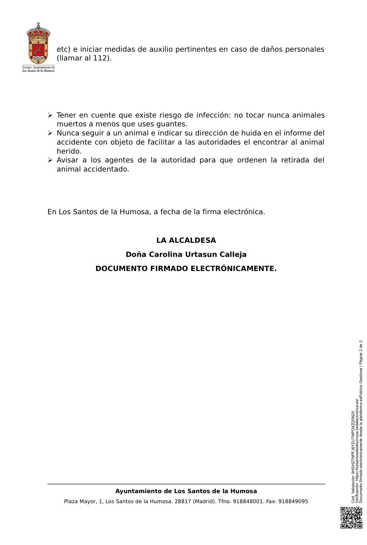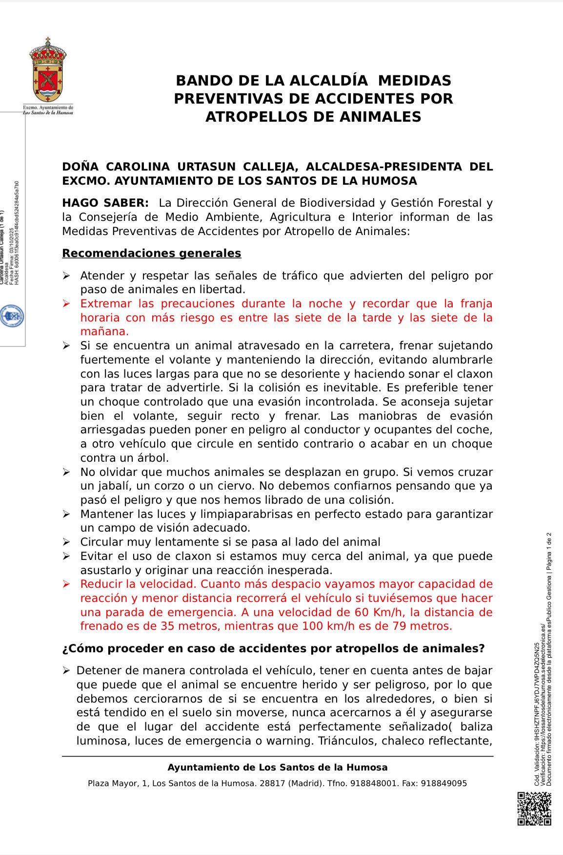 Bando de la Alcaldía – Medidas preventivas de accidentes por atropello de animales View Larger Image Ayto Los Santos2025-10-12T17:03:52+00:00 Share This Event! FacebookTwitterLinkedInWhatsAppPinterestEmail Publicaciones recientes Bando de la Alcaldía Colonias Felinas Gallery Bando de la Alcaldía Colonias Felinas septiembre 30th, 2025 | 0 Comments Bando de la Alcaldía Gallery Bando de la Alcaldía septiembre 29th, 2025 | 0 Comments Bando de Alcaldía – Foco de influenza aviar Gallery Bando de Alcaldía – Foco de influenza aviar septiembre 14th, 2025 | 0 Comments Dejar un comentario Cancelar la respuestaComentario Save my name, email, and website in this browser for the next time I comment.