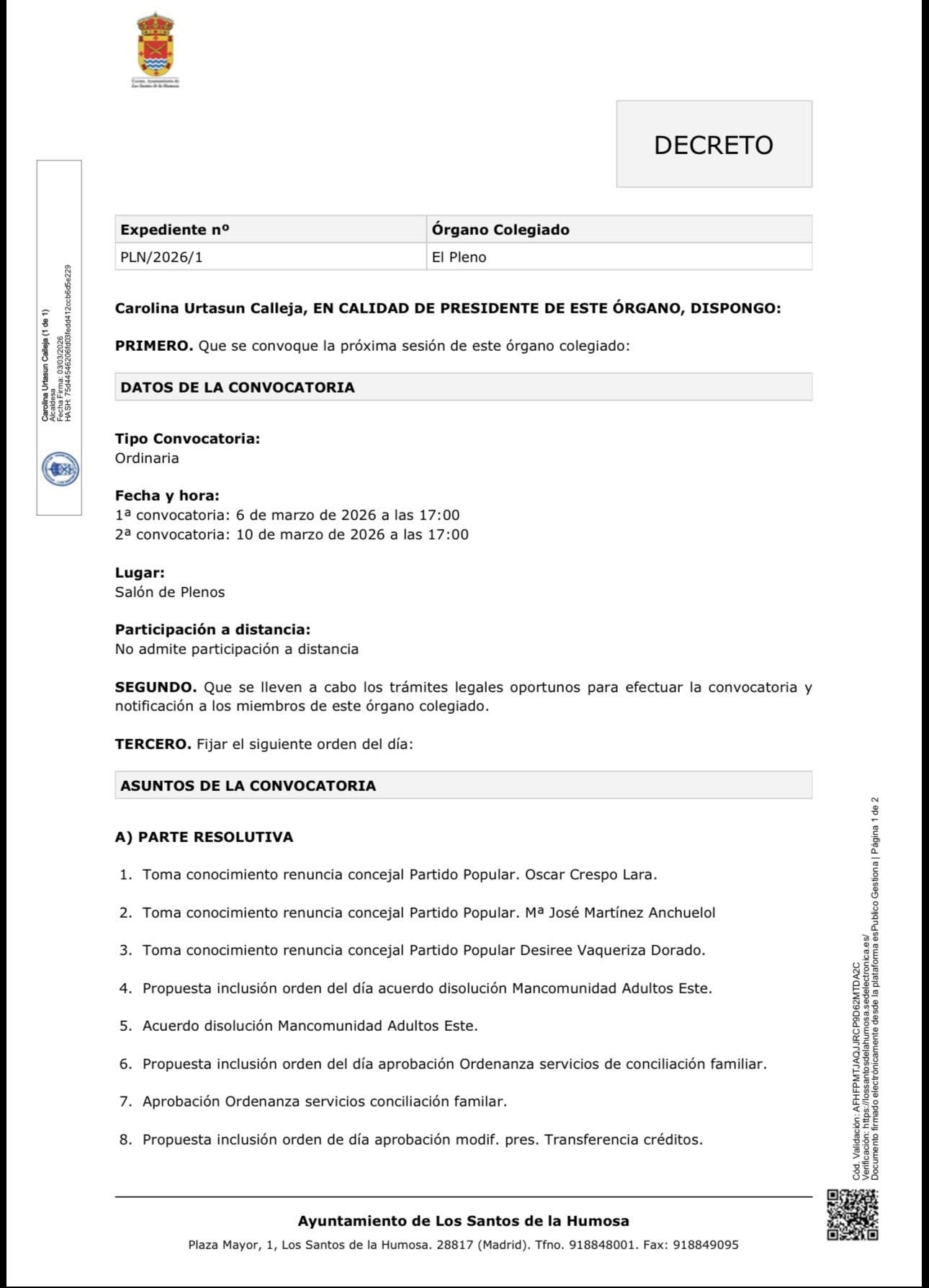 📣Próximo pleno extraordinario mañana viernes 6 de marzo a las 17:00h.