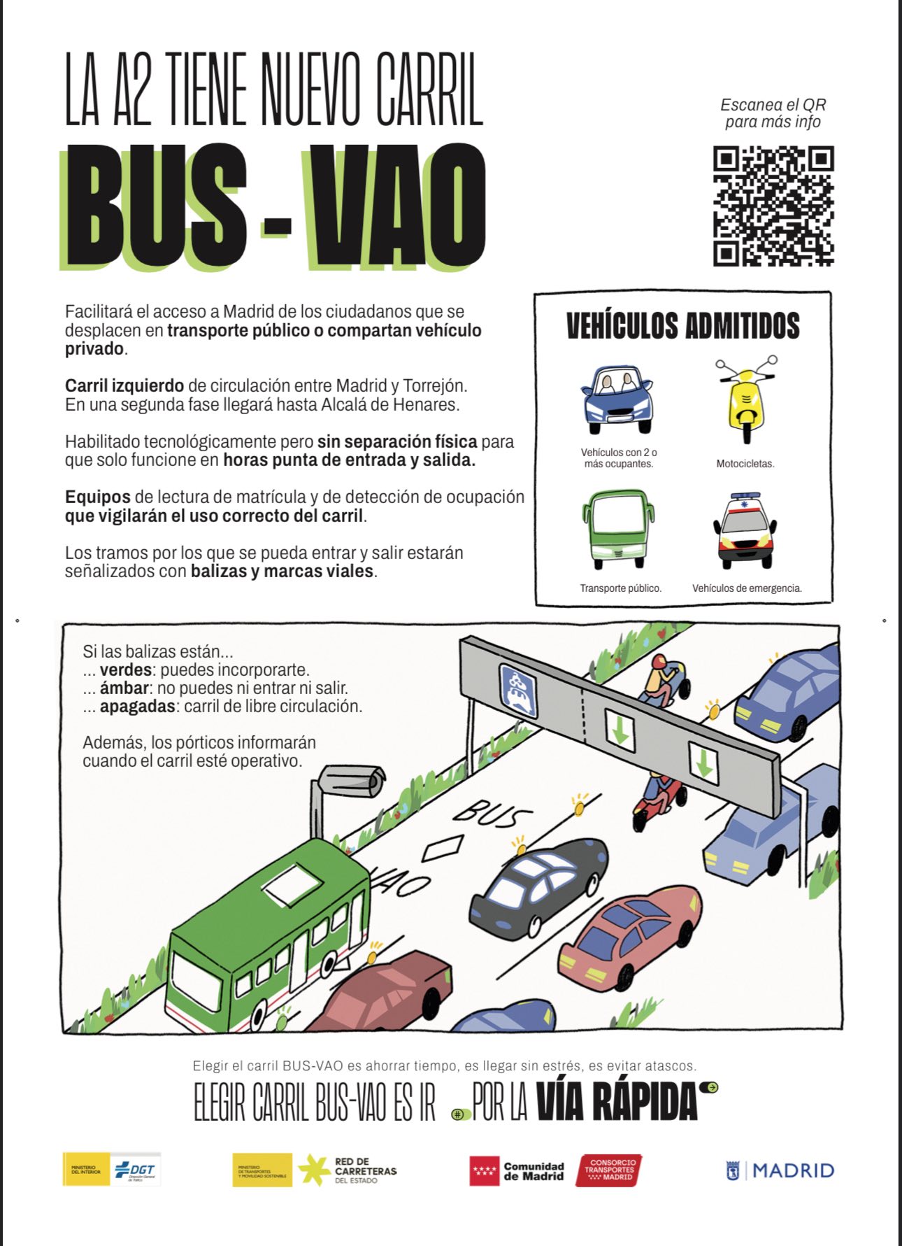 Os dejamos información de interés general, para dar a conocer el funcionamiento del nuevo carril Bus-VAO de la A-2 que comenzará a prestar servicio en el primer trimestre de 2026.