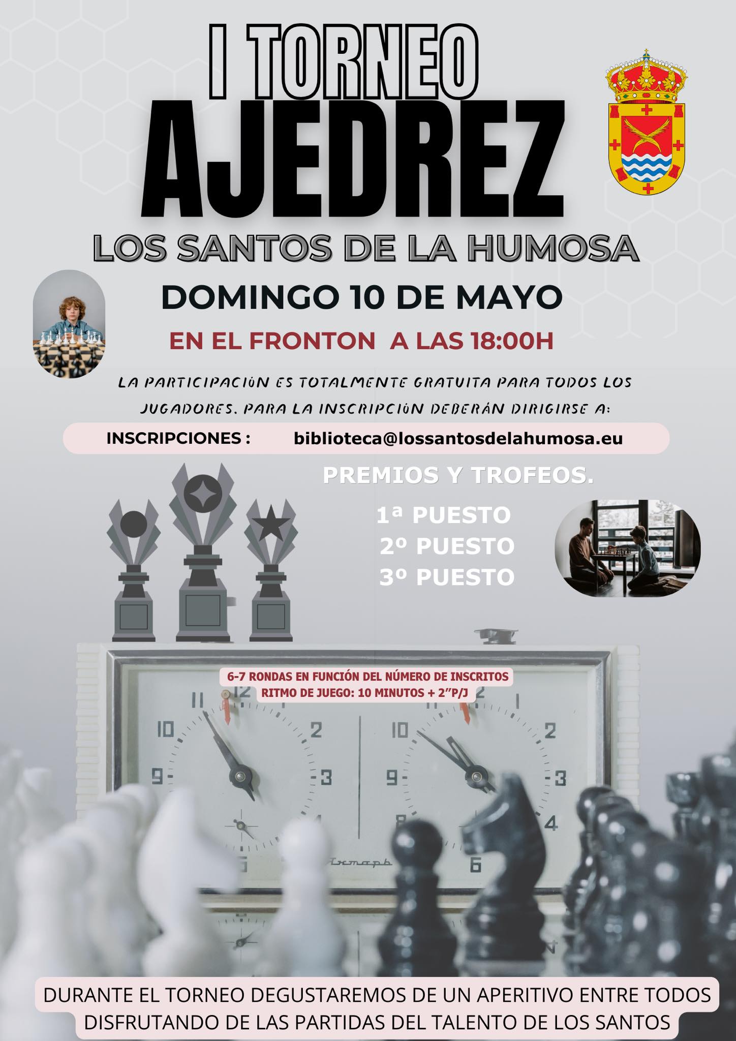 I Torneo de Ajedrez View Larger Image Por primera vez en Los Santos de la Humosa – Presentamos el I Torneo de Ajedrez Un espacio para jugadores de todas las edades y niveles, con categorías por edades, premios para los ganadores y ambiente familiar. Apúntate ya y forma parte de este evento histórico para promover la estrategia, la concentración y la convivencia a través del ajedrez. #semanaculturallossantosdelahumosa #torneodeajedrezlossantosdelahumosa Ayto Los Santos2026-04-26T21:15:23+00:00 Share This Event! FacebookTwitterLinkedInWhatsAppPinterestEmail Publicaciones recientes Bando de la Alcaldía Gallery Bando de la Alcaldía abril 23rd, 2026 | 0 Comments CONVOCATORIA ABIERTA Taller de pintura de capotes Gallery CONVOCATORIA ABIERTA Taller de pintura de capotes abril 23rd, 2026 | 0 Comments Bando de la Alcaldía Gallery Bando de la Alcaldía abril 22nd, 2026 | 0 Comments Dejar un comentario Cancelar la respuestaComentario Save my name, email, and website in this browser for the next time I comment.