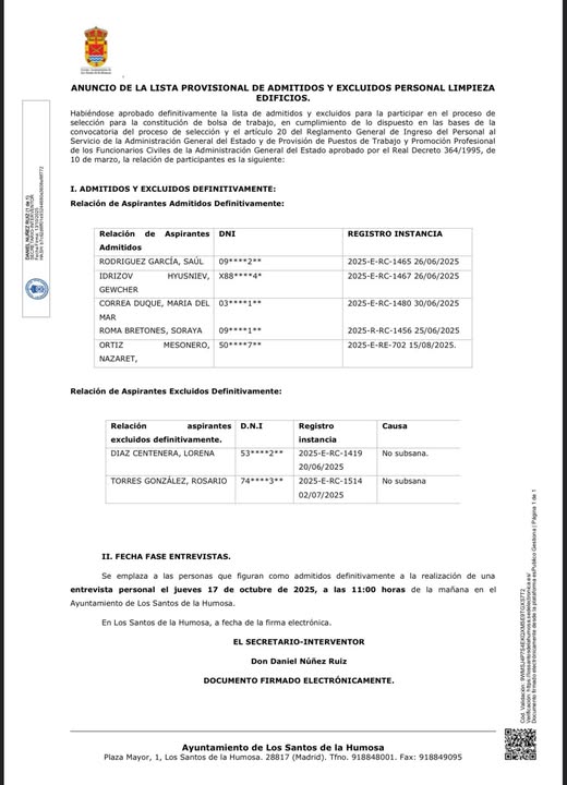 Si has sido admitido en la bolsa apúntate la fecha y hora de la entrevista .