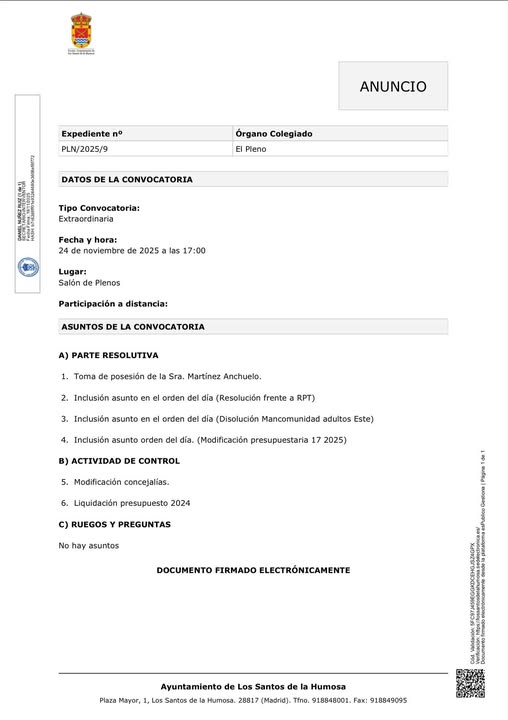 Próximo lunes 24 de noviembre a las 17:00h Pleno Extraordinario.
