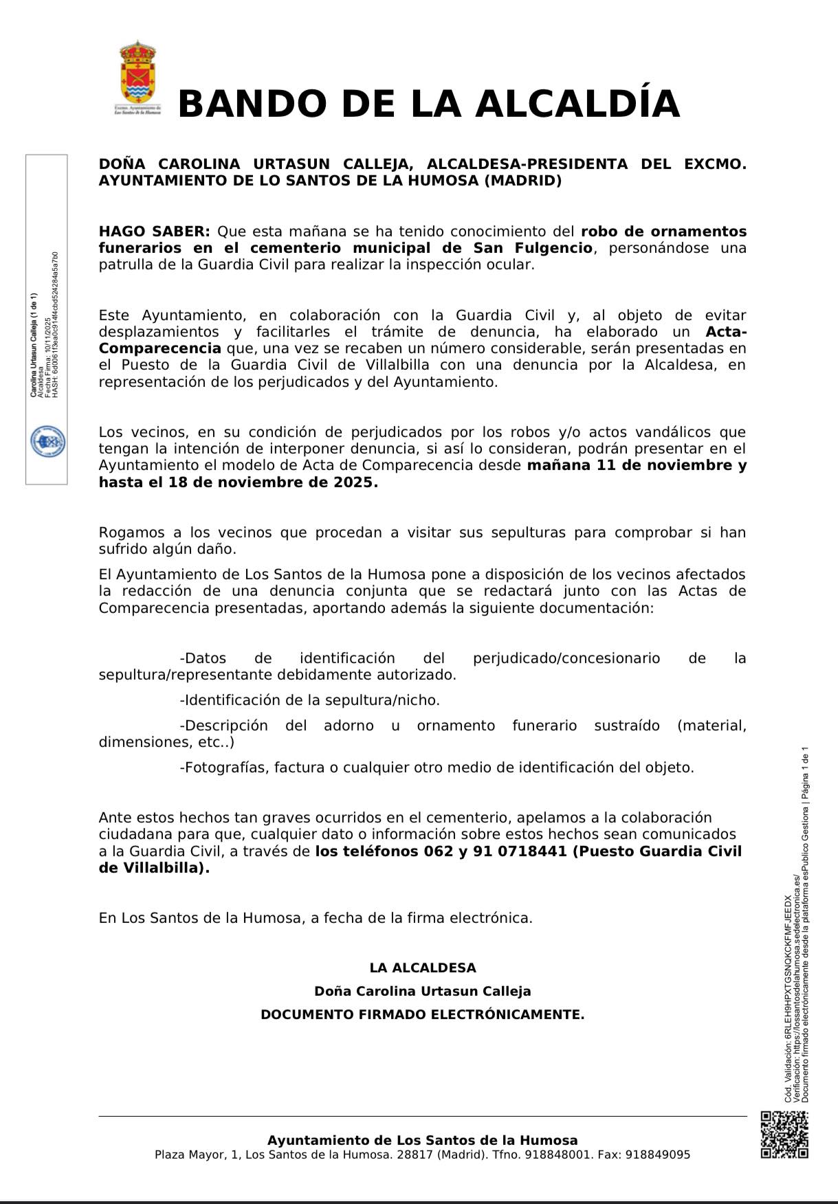 Robo de ornamentos funerarios View Larger Image Ayto Los Santos2025-11-13T20:55:07+00:00 Share This Event! FacebookTwitterLinkedInWhatsAppPinterestEmail Publicaciones recientes III Edición del concurso de vídeos cortos contra la violencia sobre las mujeres Gallery III Edición del concurso de vídeos cortos contra la violencia sobre las mujeres noviembre 13th, 2025 | 0 Comments I TORNEO DE INICIACIÓN DE TAEKWONDO Gallery I TORNEO DE INICIACIÓN DE TAEKWONDO noviembre 13th, 2025 | 0 Comments Bando de la Alcaldía Gallery Bando de la Alcaldía noviembre 13th, 2025 | 0 Comments Dejar un comentario Cancelar la respuestaComentario Save my name, email, and website in this browser for the next time I comment.